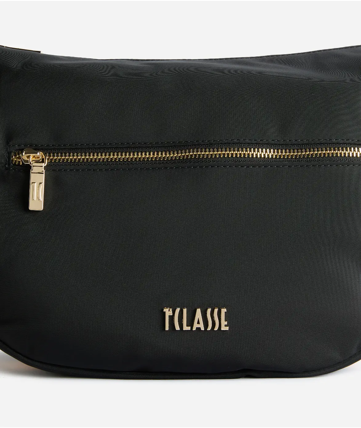 - Tracolla regolabile in nastro logato double-face con stampa Geo Classic