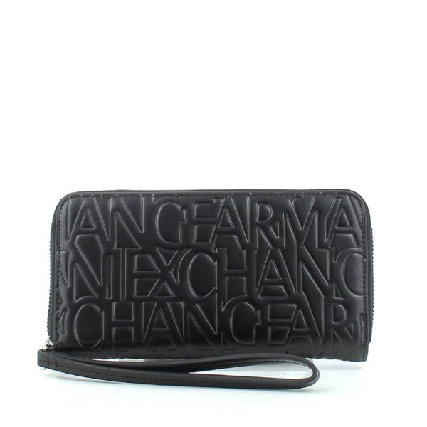 Portafogli di Armani Exchange in similpelle, polsiera laterale, chiusura zip.