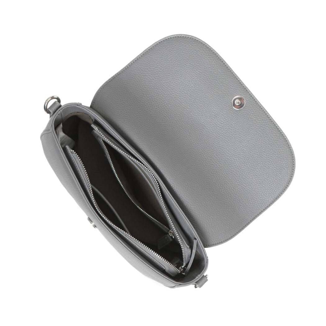 Tracolla bag con chiusura a calamita. Doppia tracolla in ecopelle e in aggiunta la tracolla larga in tessuto logato. Composta da uno scomparto comodo e spazioso. Presenza di una tasca a chiusura zip e una tasca a bustina. Finiture in metallo colore oro. Lettering logo sul fronte.