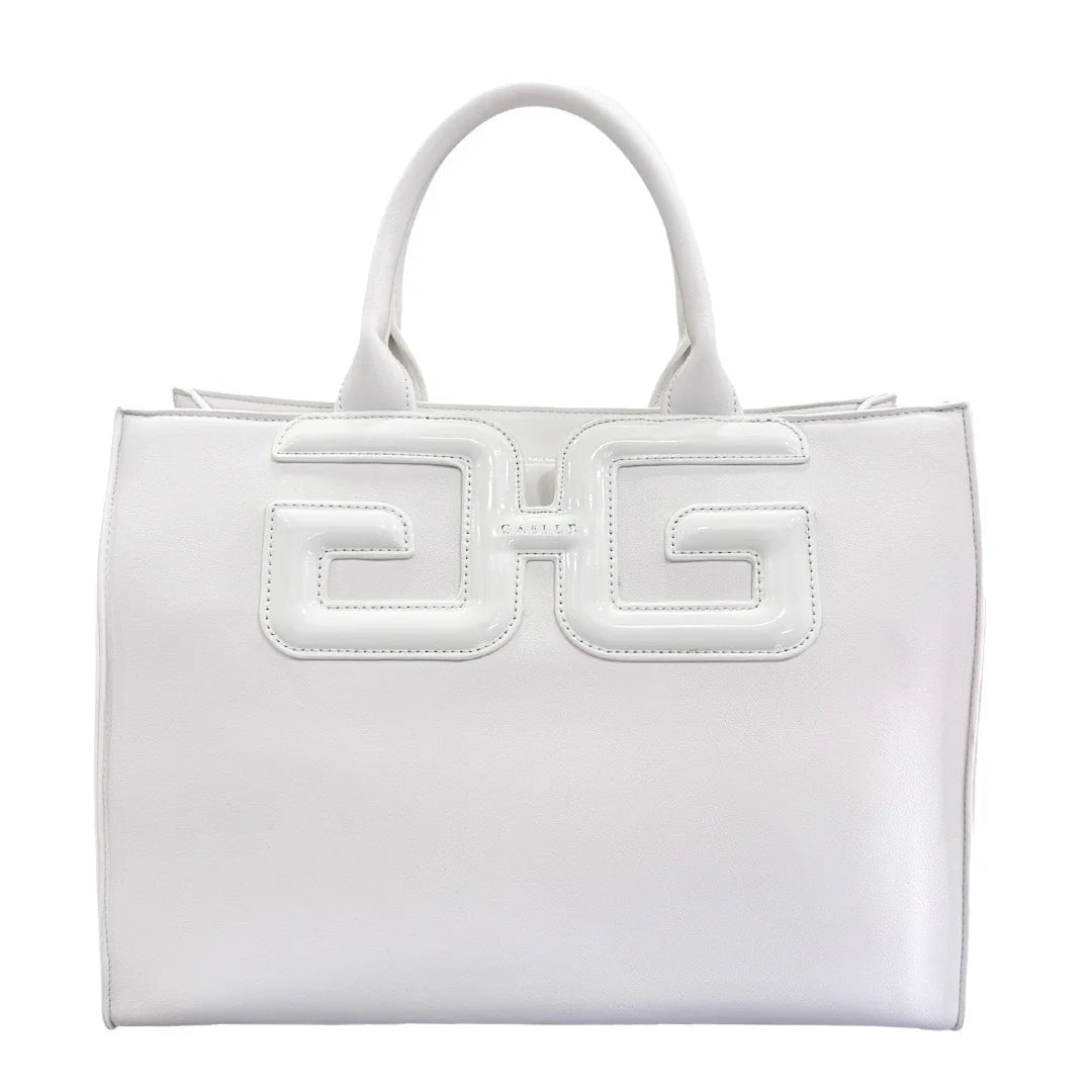 Reg hand bag in vernice con maxi patch double