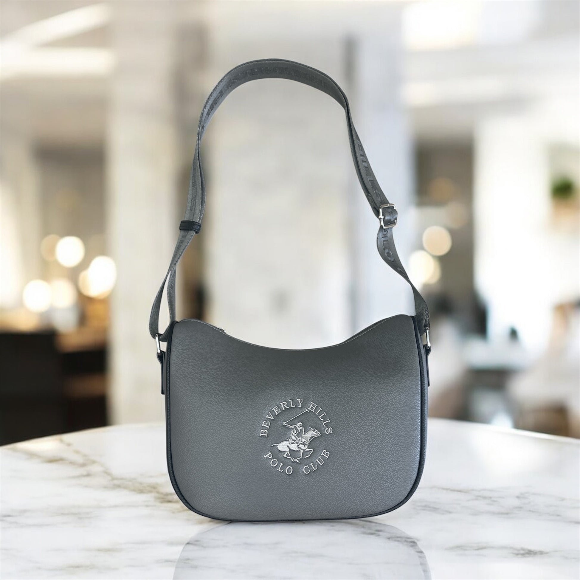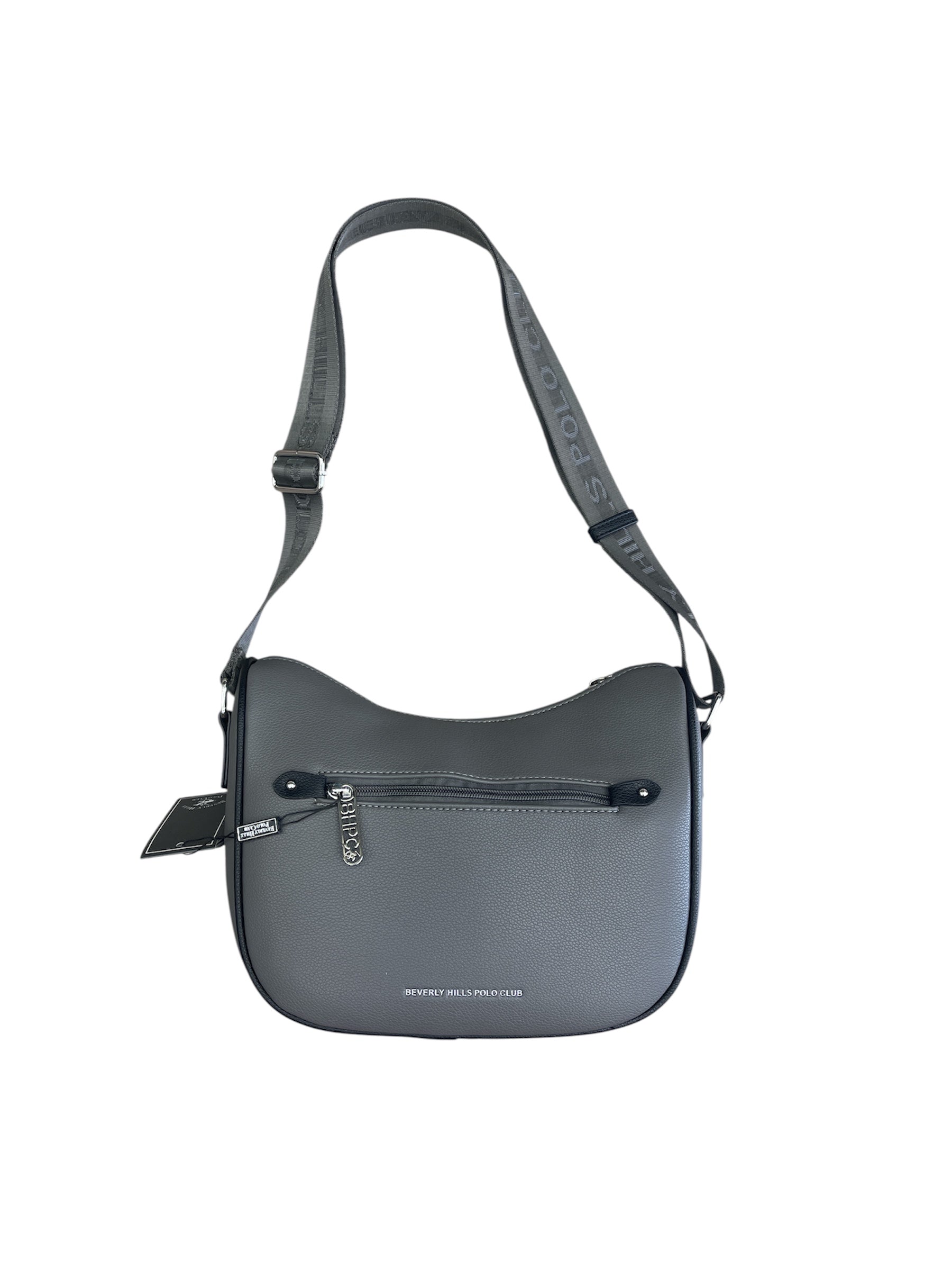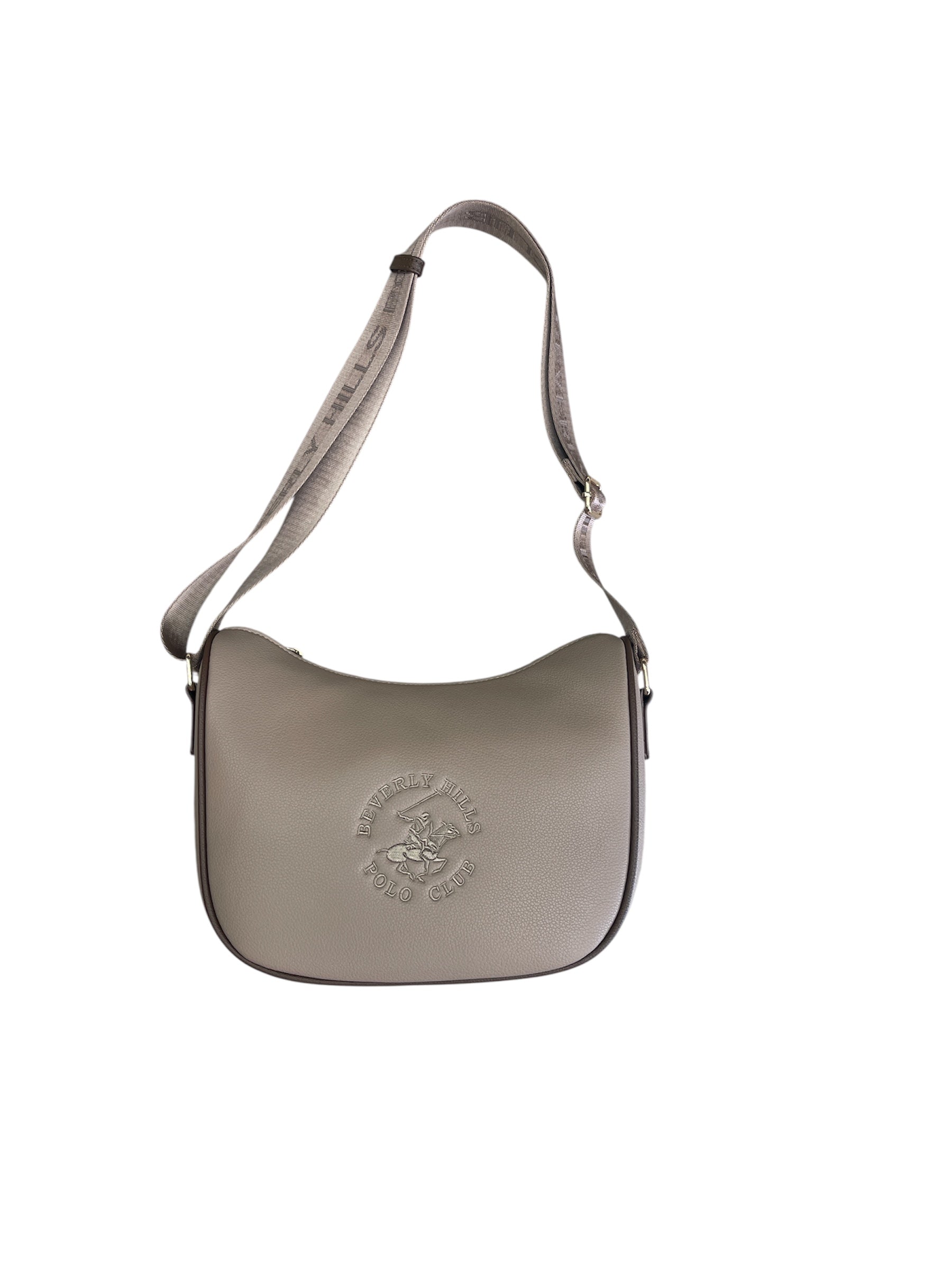 Borsa a tracolla comoda e pratica con logo sul fronte. Dispone di un ampio scomparto principale chiuso con zip, taschini interni e tasca sul retro con zip che consente di avere sempre a portata di mano chiavi e cellulare. Tracolla doppia a strisce, regolabile.
