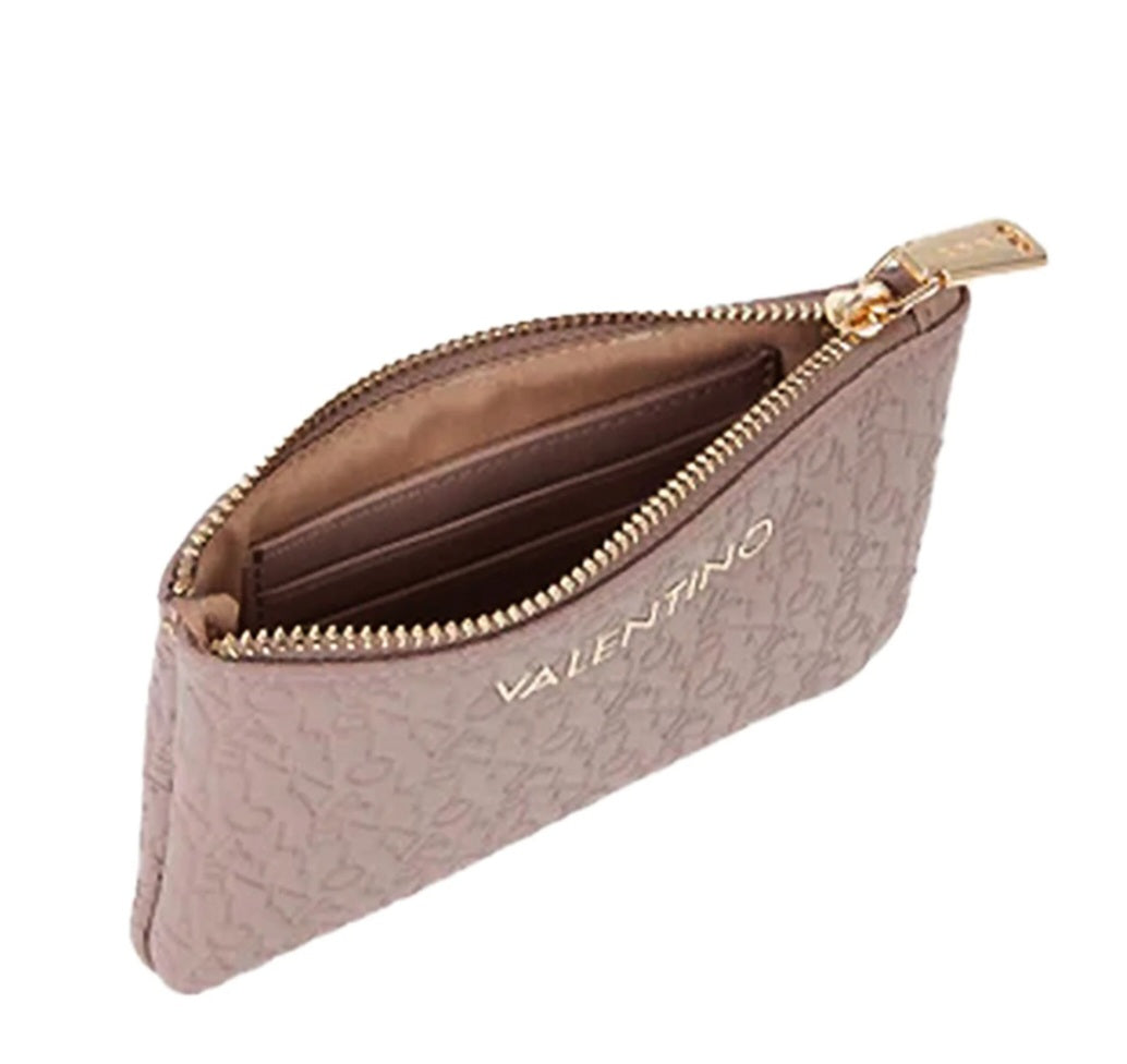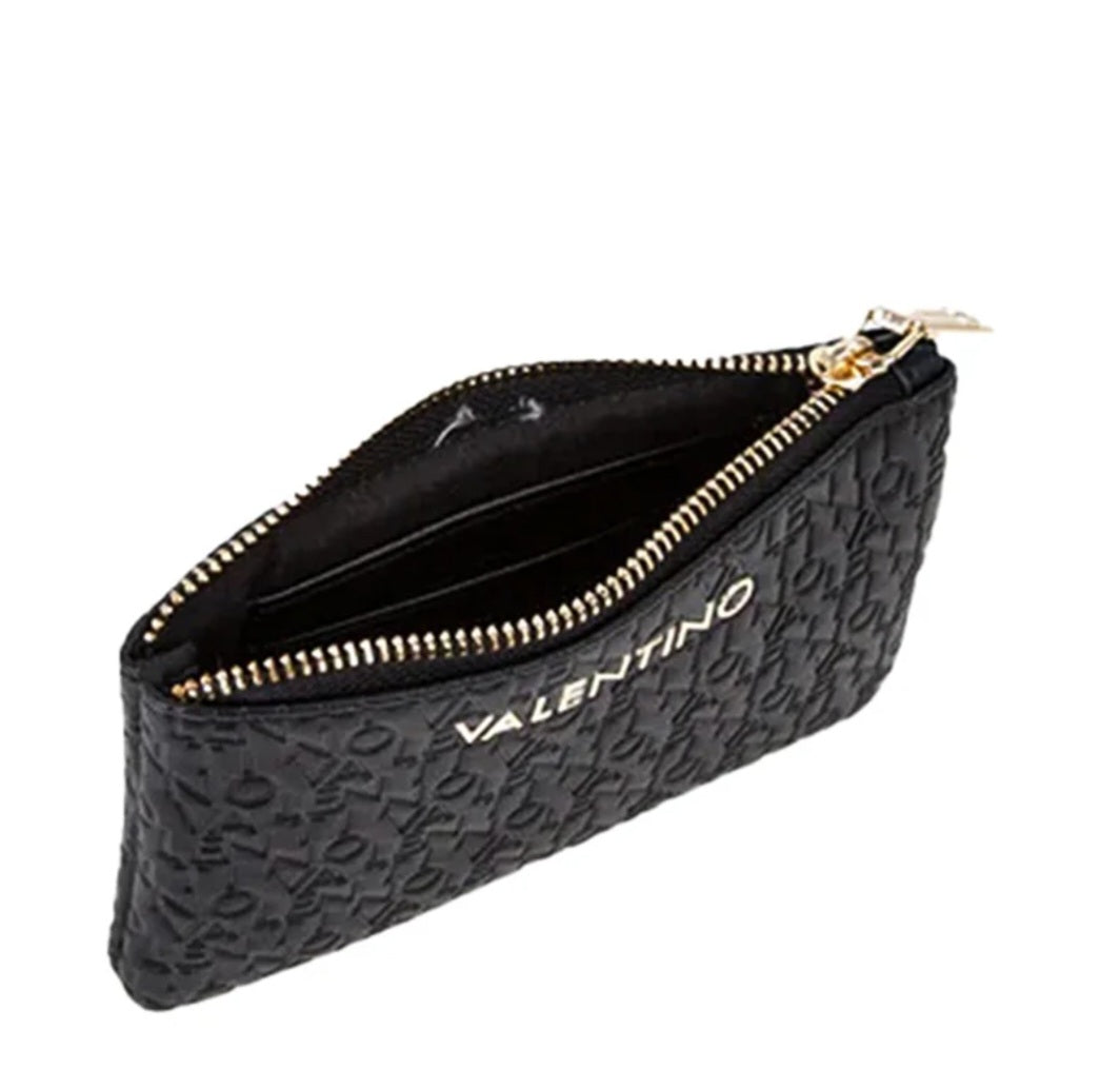 Bustina portatutto, dotata di portachiavi a catena, slots per carte di credito e tessere, chiusura con zip